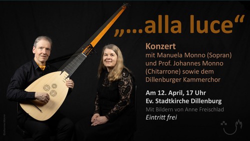 Den Abschluss der Reihe „Vom Dunkel zum Licht“ bildet ein Konzert am Sonntag, 12. April um 17 Uhr in der evangelischen Stadtkirche Dillenburg. Unter dem Titel „… alla luce“ erklingt geistliche und weltliche Musik aus Italien und Schweden.