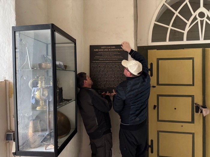 Alle Gaben und Zuwendungen für die neuen Bronzeglocken in der Ev. Stadtkirche – einzig ermöglicht durch private Geld- und Zeitspenden – bedürfen der Wertschätzung und der Erinnerung! Nun hängt die Förder- und Spendentafel. Zu besichtigen ist sie im Turmraum der Stadtkirche (hinterer Eingang der Kirche): Gott zur Ehre, zum Dank und in Erinnerung! Jetzt muss nur noch die Glocke im Hinterhof auf ihren Platz und das Projekt „Neuer Klang über der Stadt” ist abgeschlossen!